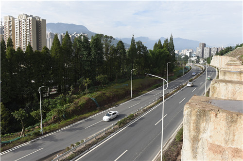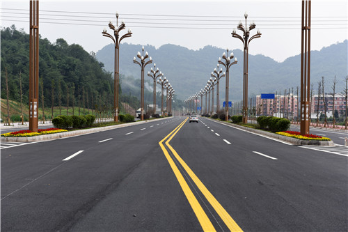 國道318線雅安至二郎山——雅安城區(qū)過境段(北外環(huán)線)項(xiàng)目是“4·20”蘆山強(qiáng)烈地震災(zāi)后重建民生項(xiàng)目。該工程起于姚橋新區(qū)雅洪公路交叉口,東連省道305線,沿光華山西側(cè)、金鳳山南側(cè)布置,穿青鼻山隧道,順碉堡山南側(cè)修建,止于康藏路西端,順接國道108線和318線,道路全長11.8公里,總投資11.96億元。道路設(shè)計(jì)為雙向4車道,設(shè)計(jì)時(shí)速60Km/h,,道路寬度從17米至49米不等。