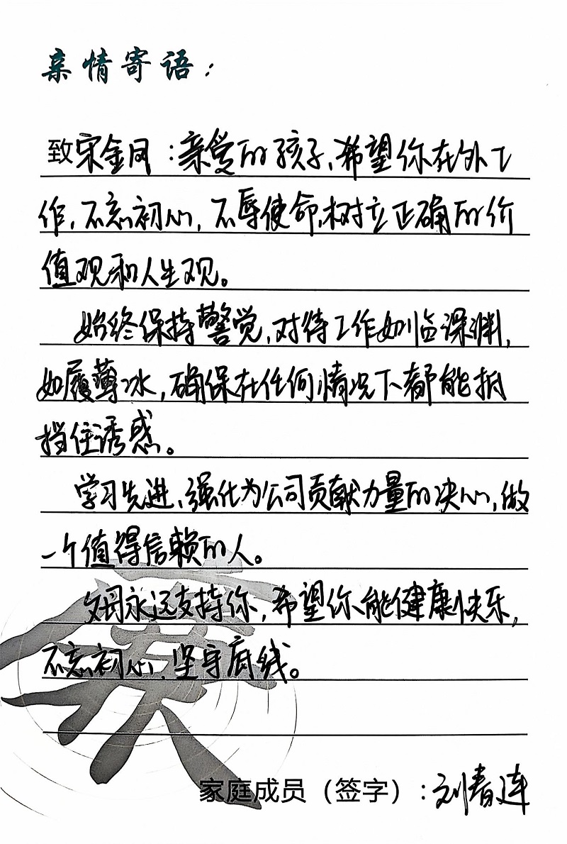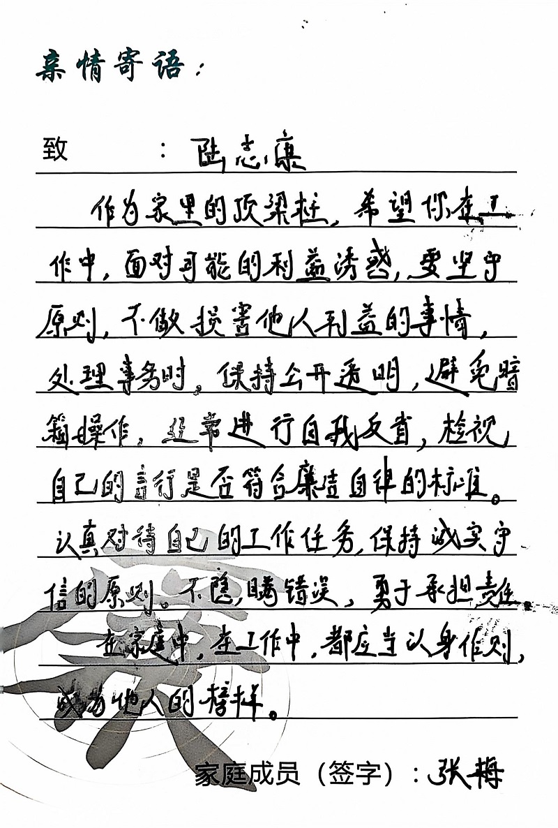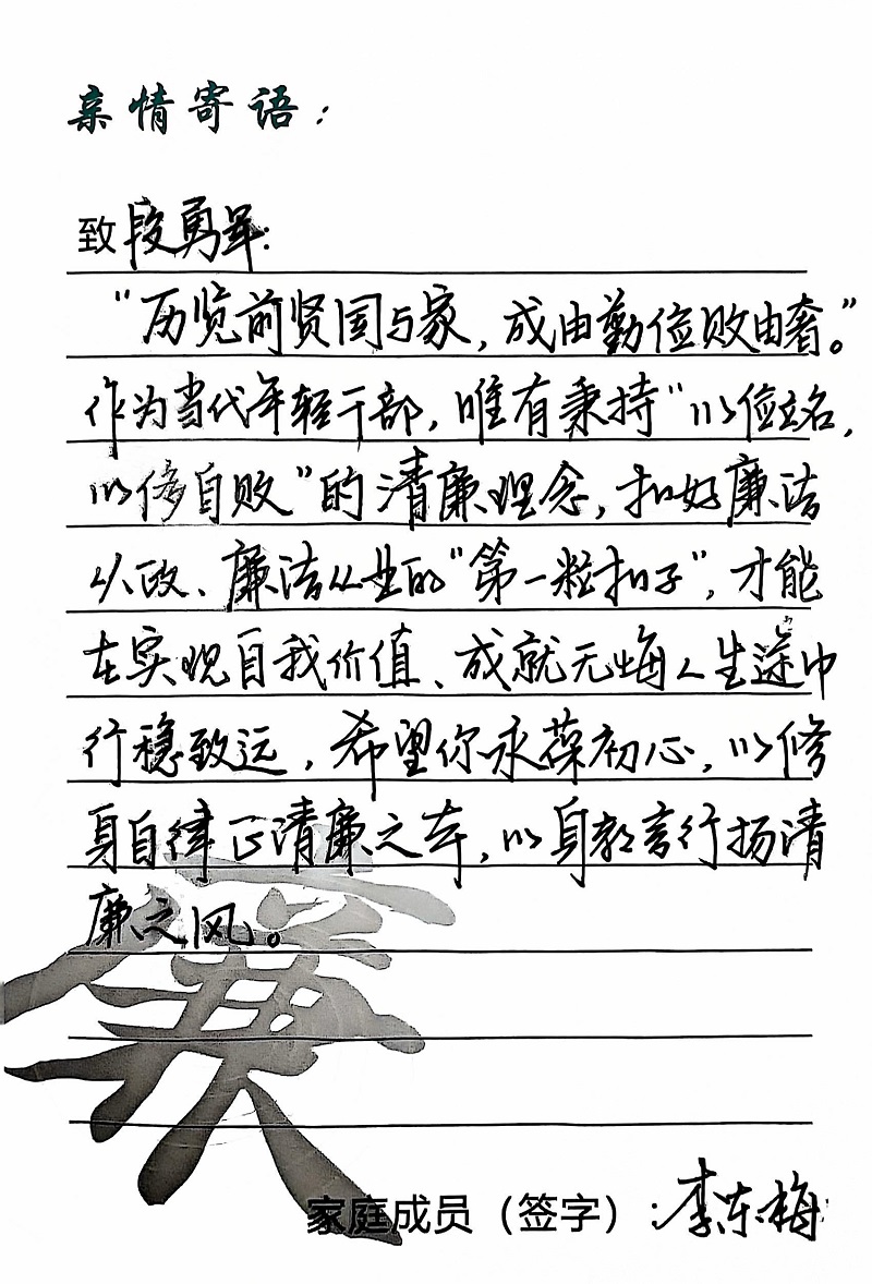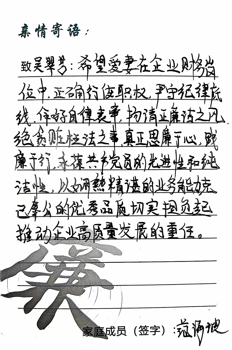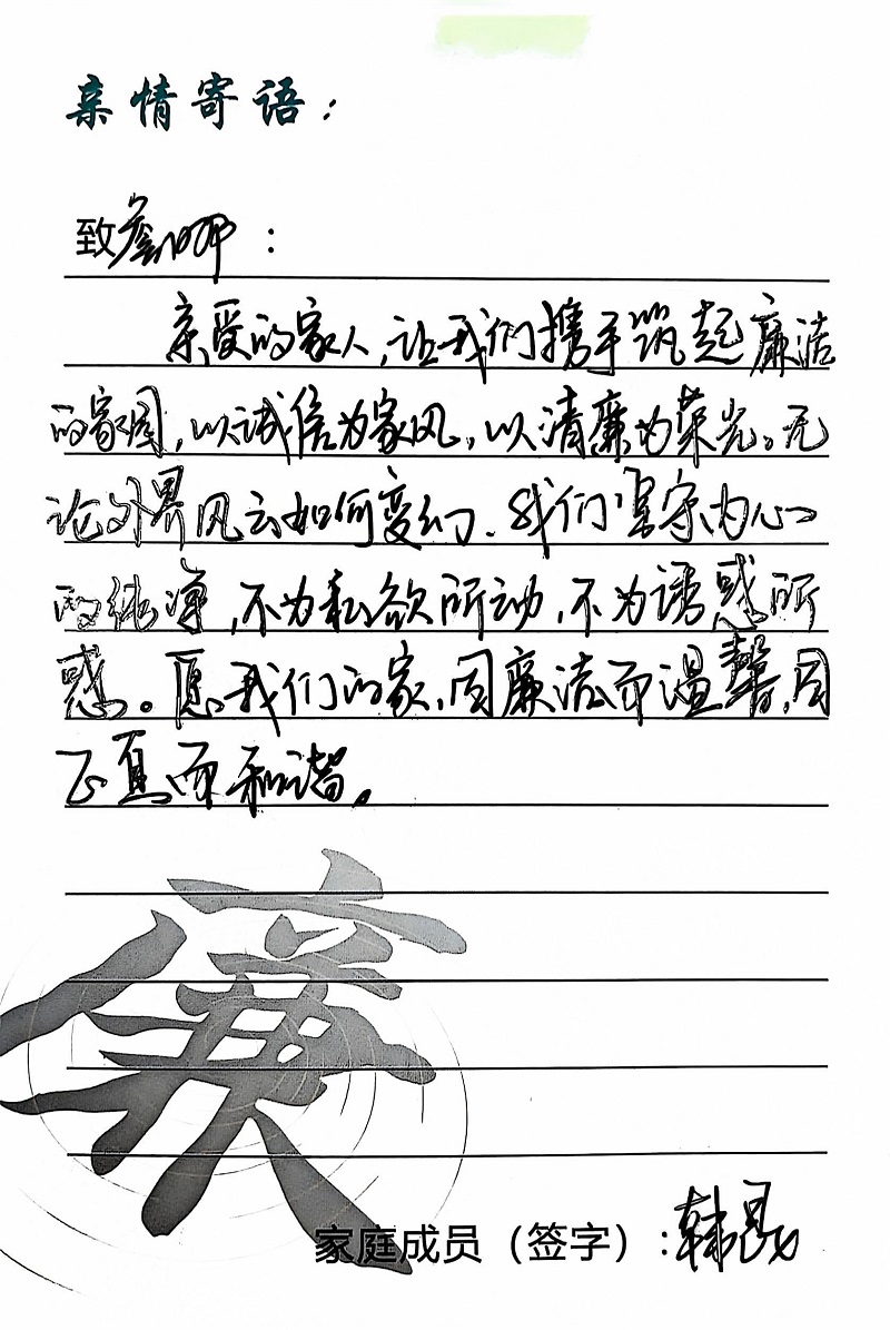 為深入學(xué)習(xí)黨的二十大精神,貫徹落實(shí)習(xí)近平總書(shū)記關(guān)于注重家庭家教家風(fēng)建設(shè)的重要論述,營(yíng)造公司崇廉、尚廉、踐廉、助廉的良好氛圍,城投公司組織開(kāi)展了“家滿清風(fēng)·廉潤(rùn)城投”廉潔文化活動(dòng)。活動(dòng)開(kāi)展以來(lái),共征集廉政寄語(yǔ)210余條。經(jīng)各部門、子公司推薦,城投公司相關(guān)部門審核,評(píng)選出優(yōu)秀廉潔寄語(yǔ)43條。現(xiàn)將優(yōu)秀廉政寄語(yǔ)分批次進(jìn)行展播,快來(lái)一起欣賞吧!