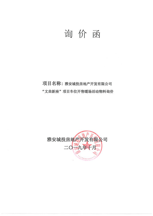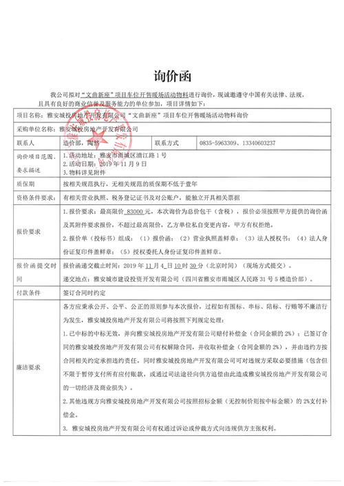 雅安城投房地產(chǎn)開發(fā)有限公司詢價函