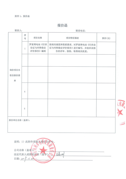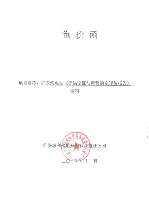 羅家灣電站《行洪論證與河勢穩(wěn)定評價報告》編制詢價函