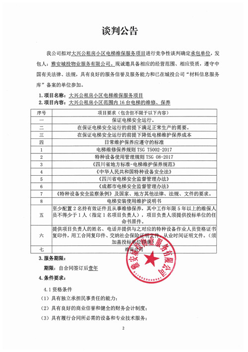 大興公租房小區(qū)電梯維保服務(wù)項(xiàng)目的競(jìng)爭(zhēng)性談判公告