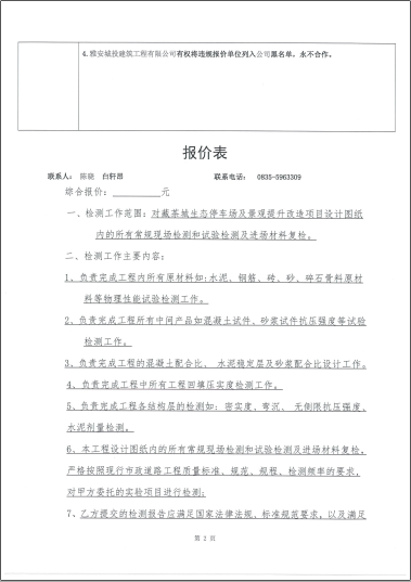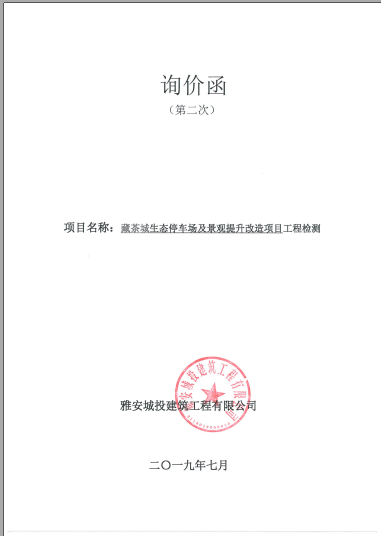 藏茶城生態(tài)停車場及景觀提升改造項(xiàng)目工程檢測詢價函