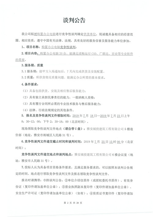 城投建工購(gòu)置辦公電腦確認(rèn)供貨單位的競(jìng)爭(zhēng)性談判公告