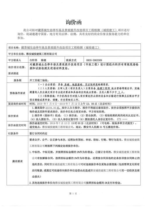 藏茶城生態(tài)停車場及景觀提升改造項(xiàng)目工程檢測