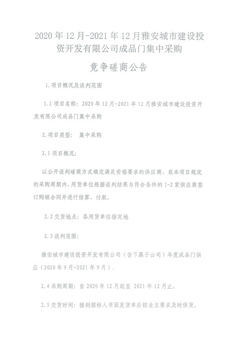 2020年12月-2021年12月雅安城市建設(shè)投資開發(fā)有限公司成品門集中采購競爭磋商公告
