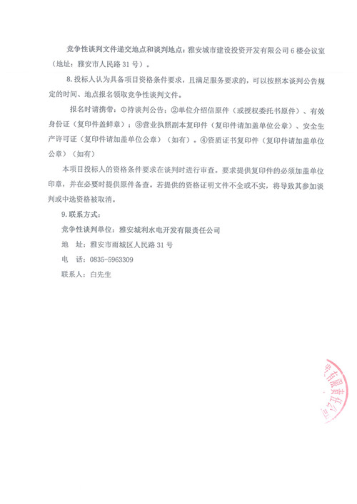 滎經(jīng)縣門(mén)坎石電站大壩修復(fù)工程競(jìng)爭(zhēng)性談判公告