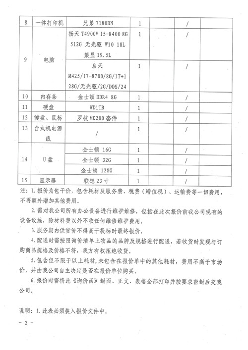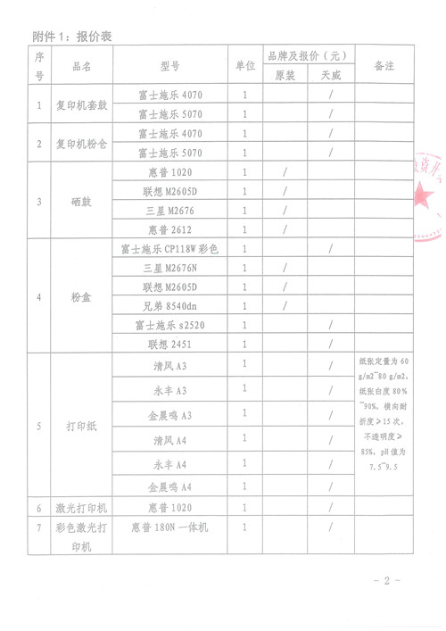 雅安城市建設投資開發(fā)有限公司辦公耗材詢價函