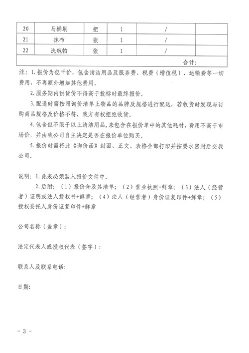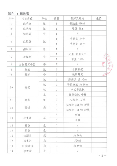 雅安城市建設(shè)投資開發(fā)有限公司清潔用品詢價函