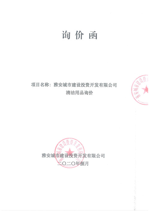 雅安城市建設(shè)投資開發(fā)有限公司清潔用品詢價函