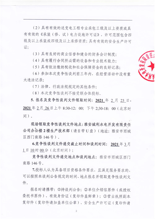 城利水電公司10kV禁壩線安全提升改造工程競爭性談判公告