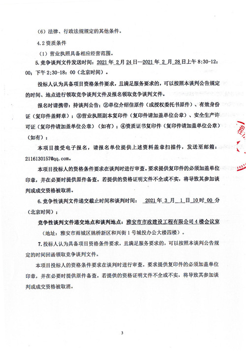 市政公司雨城大道一、二標(biāo)段透水磚采購競(jìng)爭性談判公告