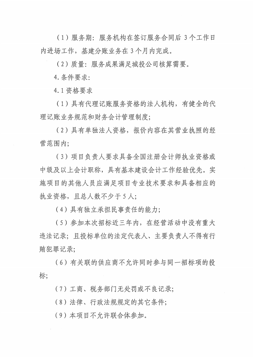 城投公司基建項目代理記賬公司服務(wù)采購磋商談判公告(第二次)