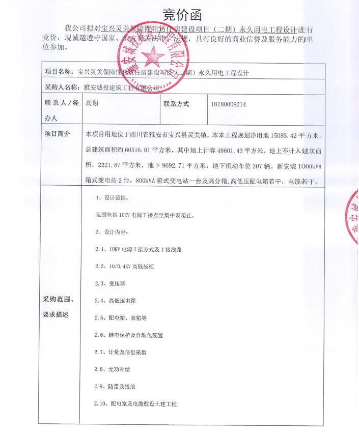 寶興縣靈關(guān)保障性租賃住房建設(shè)項目(二期)永久用電工程設(shè)計競價公告