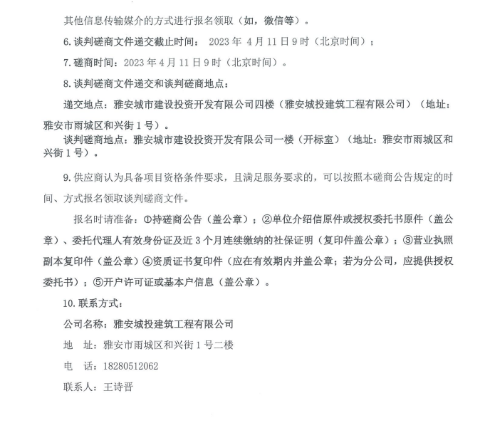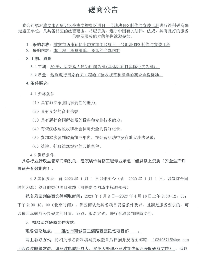 雅安市西康記憶生態(tài)文旅街區(qū)項目一號地塊項目EPS制作與安裝工程采購談判磋商公告