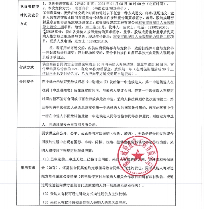雅安市雨城區(qū)人民醫(yī)院能力建設(shè)二期項(xiàng)目警務(wù)室、崗?fù)げ少徃?jìng)價(jià)公告