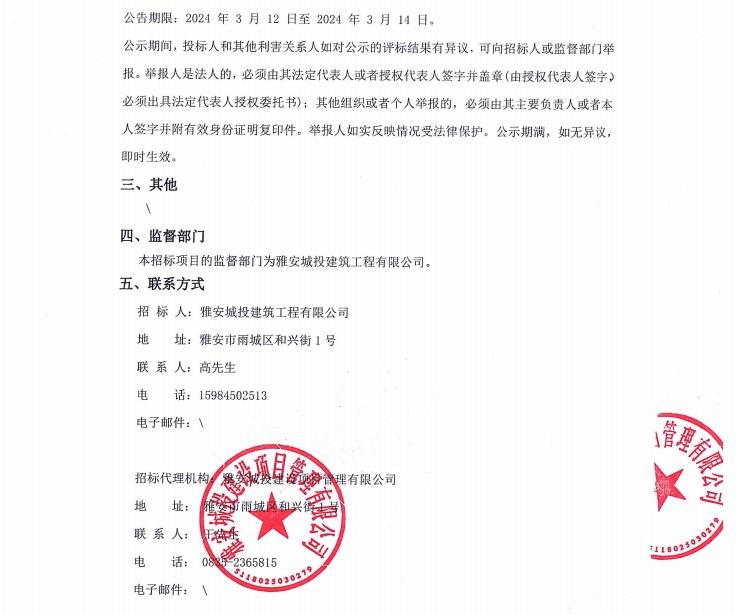 寶興縣靈關保障性租賃住房建設項目二期消防工程專業(yè)分包(含暖通)(第二次)中標候選人公示