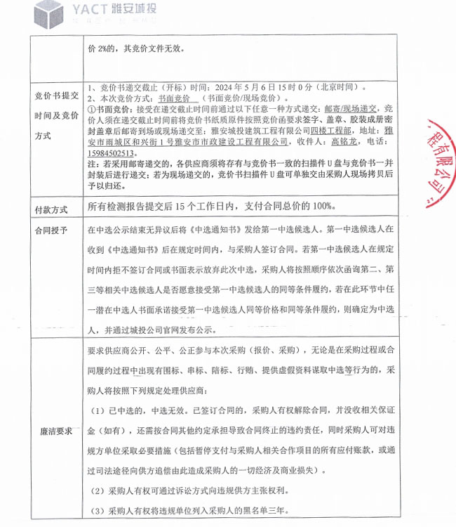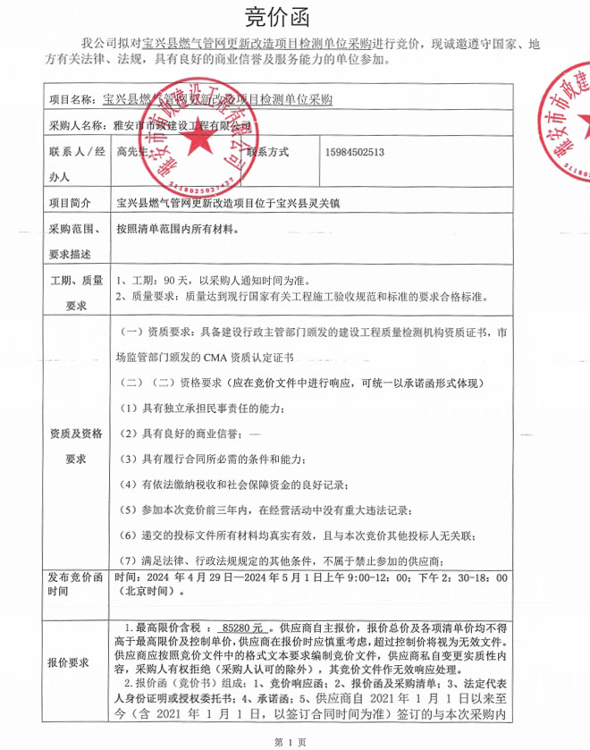寶興縣燃?xì)夤芫W(wǎng)更新改造項(xiàng)目檢測(cè)單位采購競價(jià)公告