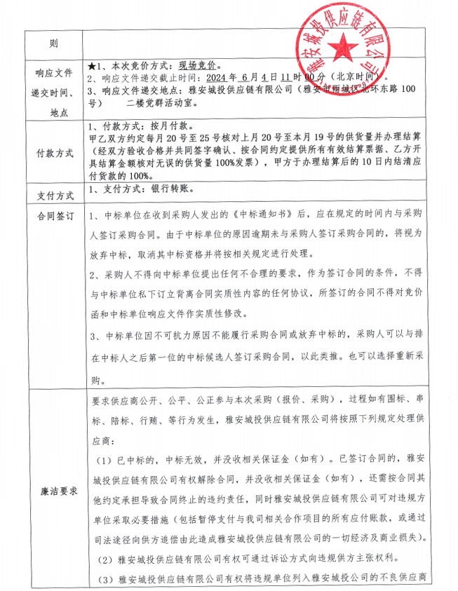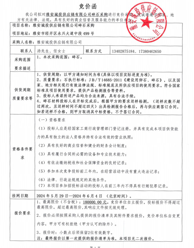 雅安城投供應(yīng)鏈有限公司碎石采購競價公告