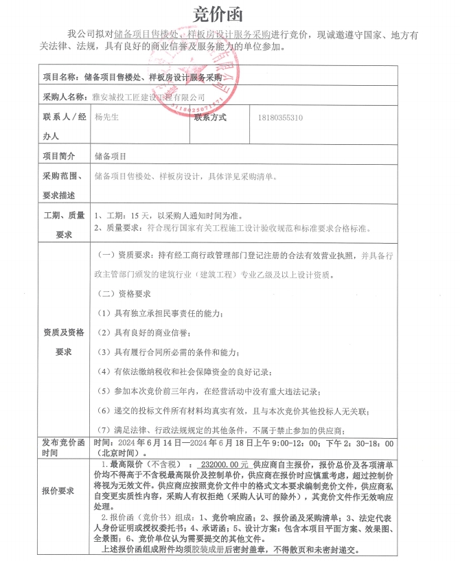 競價(jià)函-設(shè)計(jì)服務(wù)采購-雅州印