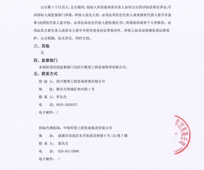 青鼻山隧道二號及附屬橋梁工程項目造價咨詢服務(wù)中標(biāo)候選人公示