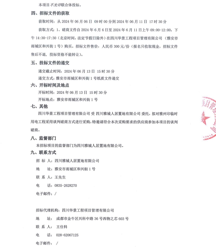 雅州印臨時用電工程招標(biāo)公告