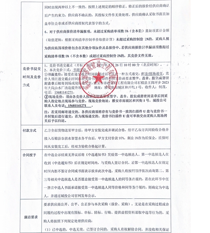 2023年大崗山水廠改造提升項(xiàng)目無線遠(yuǎn)傳機(jī)械水表競價(jià)函