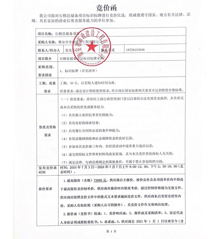 石棉縣儲(chǔ)備項(xiàng)目標(biāo)識(shí)標(biāo)牌競(jìng)價(jià)公告