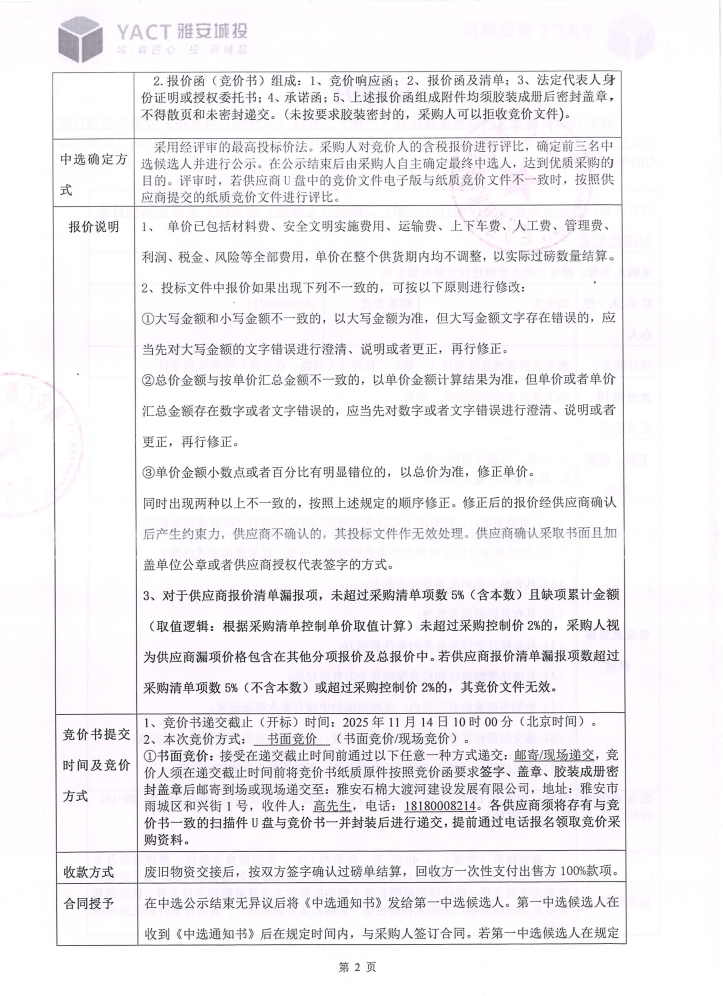 雅安文教新城建設(shè)項目(一期)二標(biāo)段(大同路、眾友路)勞務(wù)分包項目廢舊圍擋處置競價公告