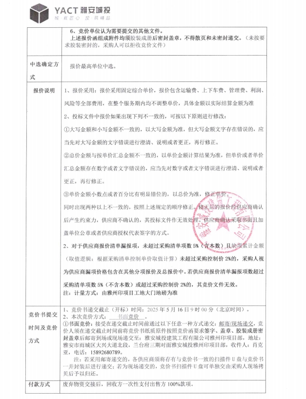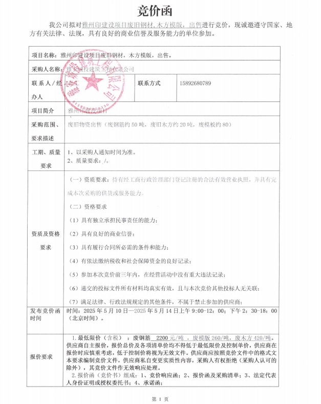 雅州印建設(shè)項目廢舊鋼材,木方模版出售競價公告
